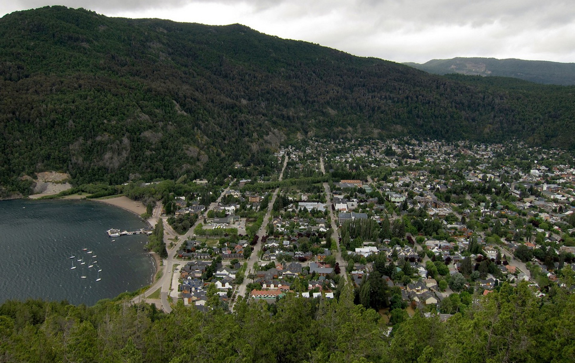 Beliggende i en smuk dal omgivet af bjerge ved den østlige ende af Lácarsøen er byen adgangsstedet for besøg i LanÃn Nationalpark. Byen har kun 17. 000 indbyggere og er ligesom Bariloche præget af alpin byggestil med nydelige blomsterhaver. Herfra gÃ¥r udflugterne til Quila Quila, hvor man stadig kan se Caciques indianere og herfra videre mod Chile ad vejen til Hua Hua passet. Mod syd ligger den berømte rute langs de 7 søer pÃ¥ vejen mod San Carlos de Bariloche