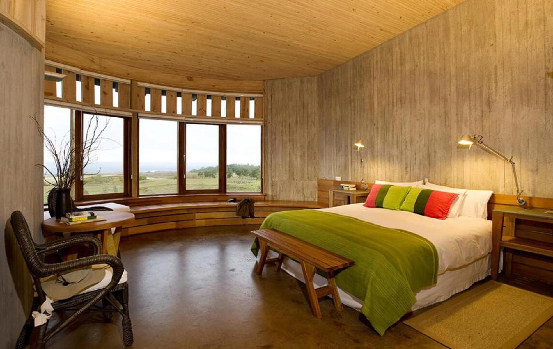 De 26 værelser og suiter er henholdsvis 32 og 44 kvm store, og har alle havudsigt og moderne bekvemmeligheder - dog ikke TV, som man ikke synes hører til denne naturoplevelse.