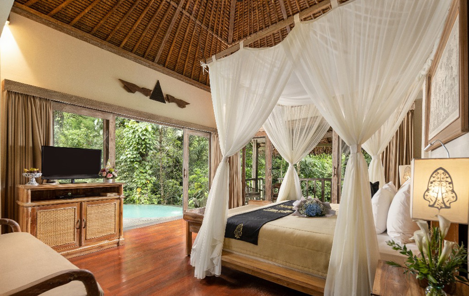 The Kayon Resort er et fortryllende femstjernede boutique-resort er designet i fuldstændig harmoni med naturen. Hotellet ligger i tropisk regnskov omringet af Petanu-floden, hvor de naturlige omgivelser skaber en afslappende stemning i harmoni med naturen. Resortet tilbyder luksuriøse værelser med store marmorbadeværelser samt narturskønne terrasser. Kayon Resort er det oplagte sted til bare at slappe af og holde ferie i ét med naturen. Der er endda mulighed for spabehandlinger og massage, hvis man vil forkæle sig selv lidt ekstra. Resortet ligger kun 10 minutters kørsel fra Ubud centrum.