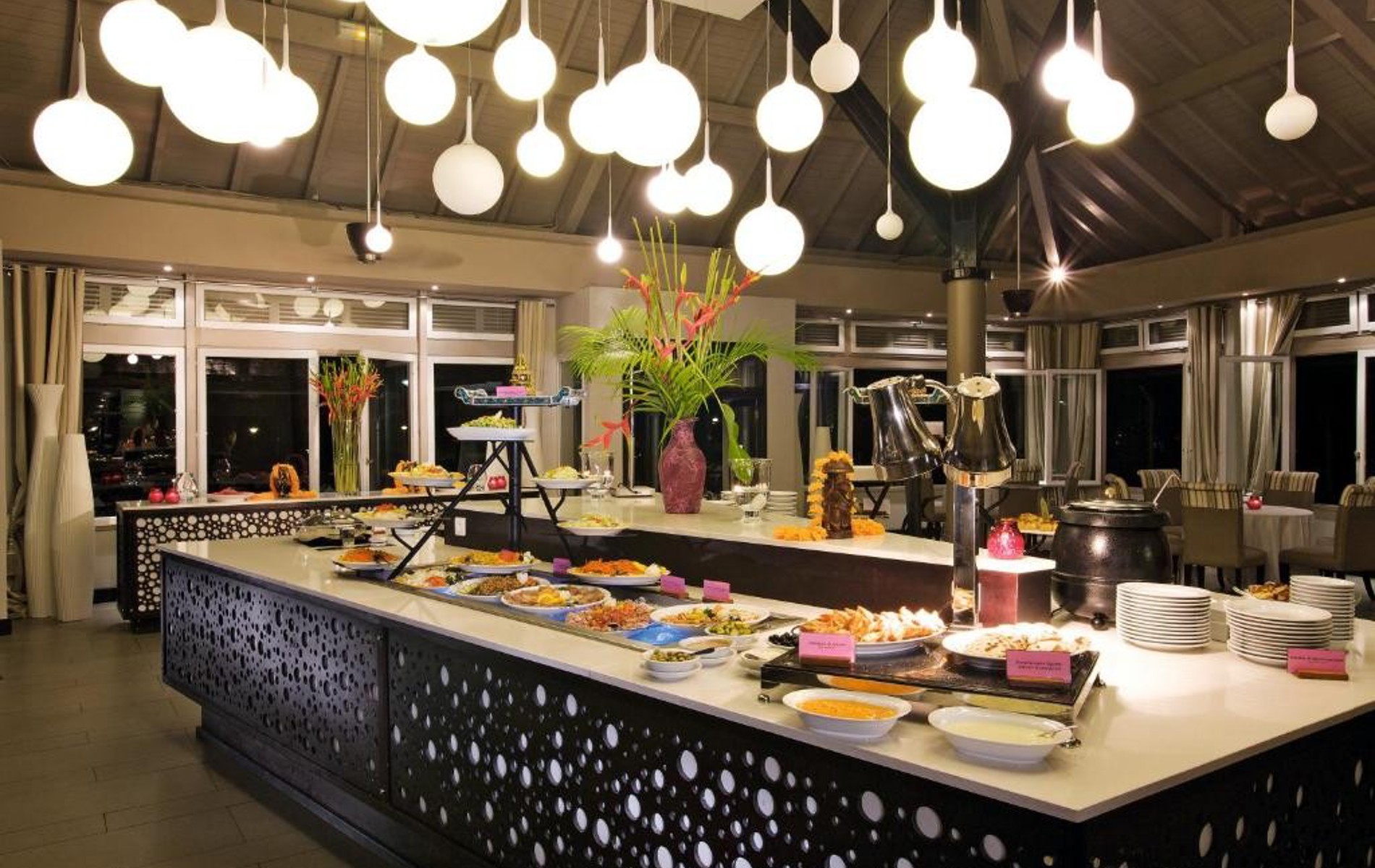Hotellet har en snackbar, en kreolsk restaurant, og om aftenen er der en tematisk buffet. Hertil kommer en mindre gastronomisk a'la carte restaurant. Hotellet har deslige tema aftener med forskellige slags underholdning.
