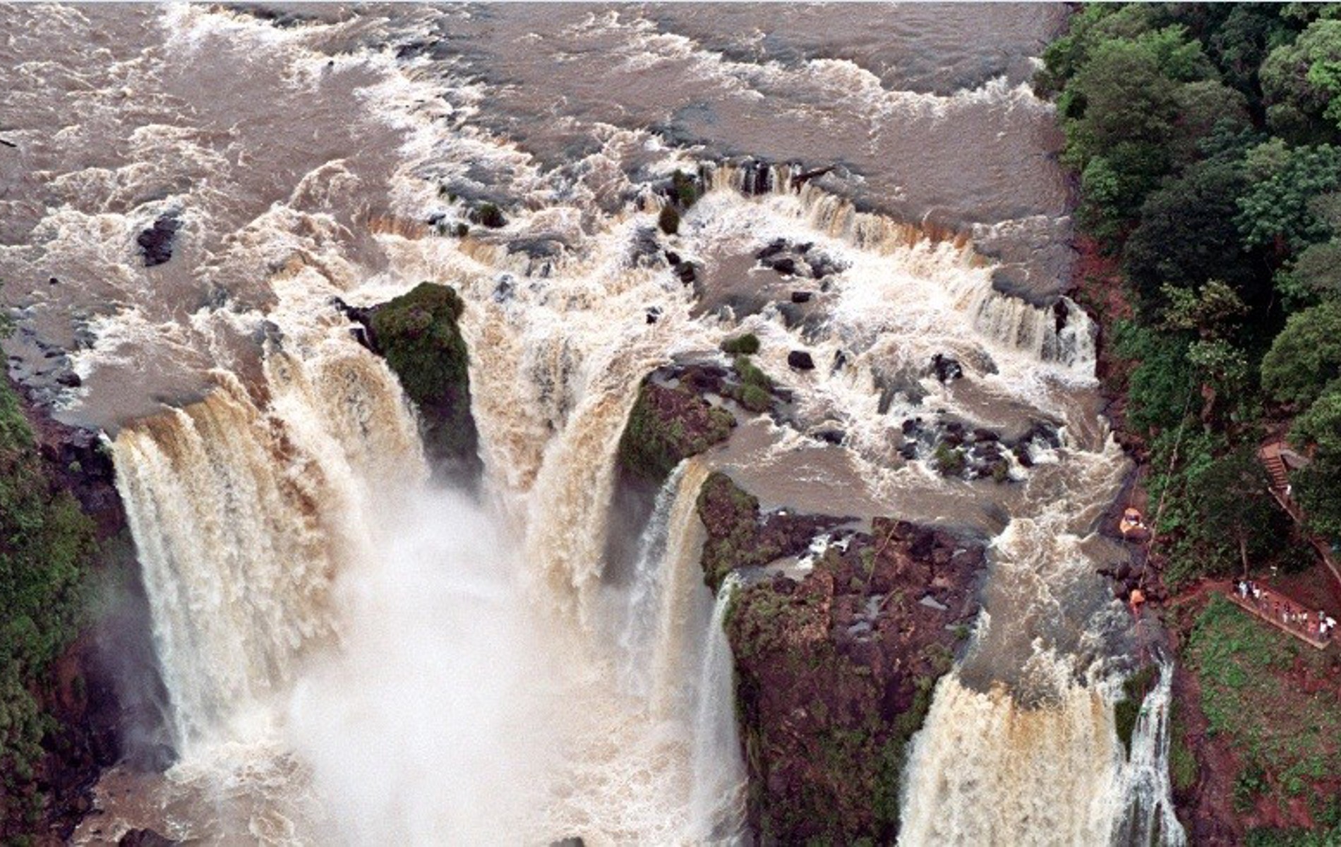 Cataratas de Iguazú ligger på grænsen mellem Brasilien, Argentina og Paraguay og er i virkeligheden hele 275 vandfald fordelt over en strækning på 2,5 km.