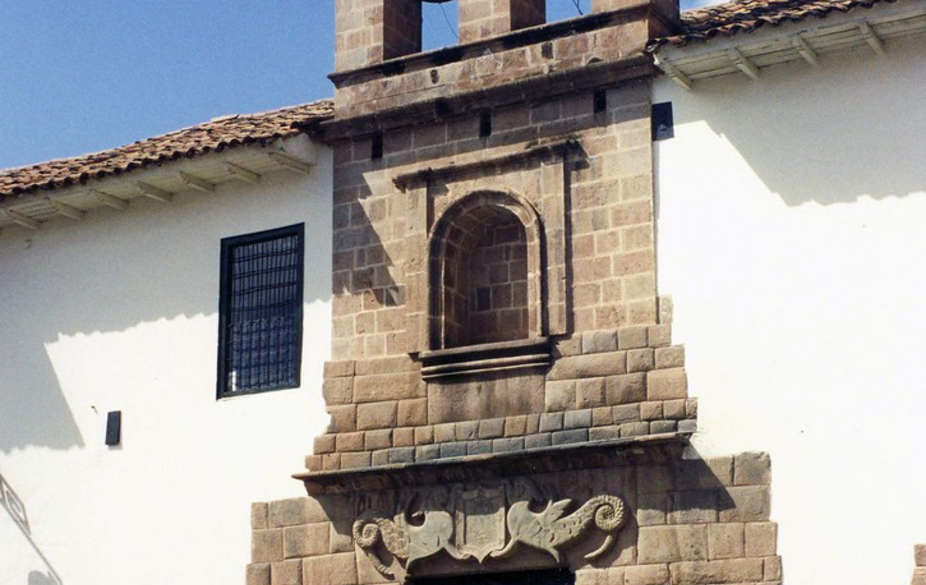 Santo Domingo: Kirke bygget på fundamenterne af „Soltemplet" med stenene fra selve dette. En model af templet kan ses ovenpå. Udgravningerne viser noget af det bedste inkastenarbejde man finder i Cuzco.