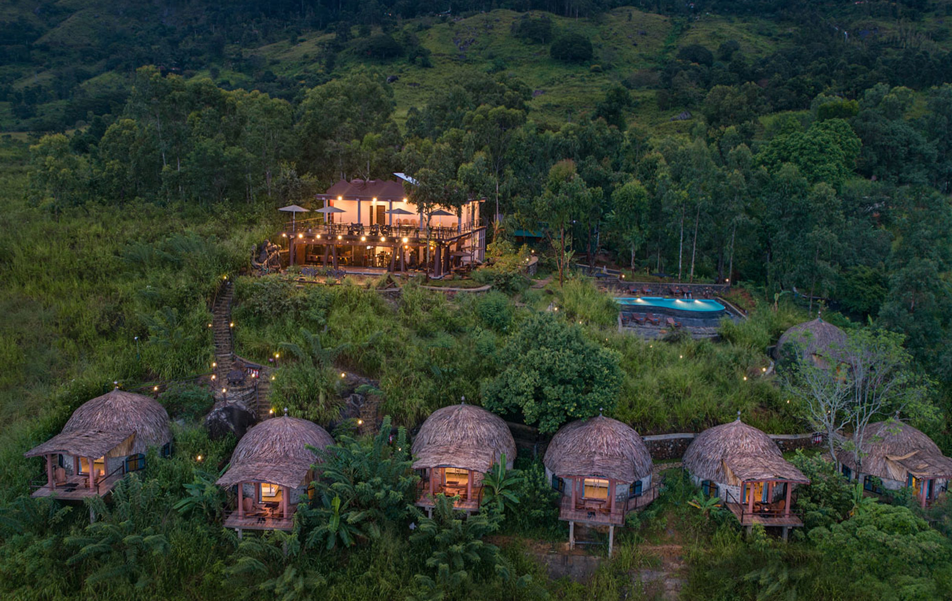 spektakulære udsigter til den næste, nyd et koldt brusebad i et vandfald efterfulgt af den fineste kop te eller tag en zip-line over bjergene. Ellers kan i få et dyb i poolen eller få en bid lækker med på resortets restaurant.