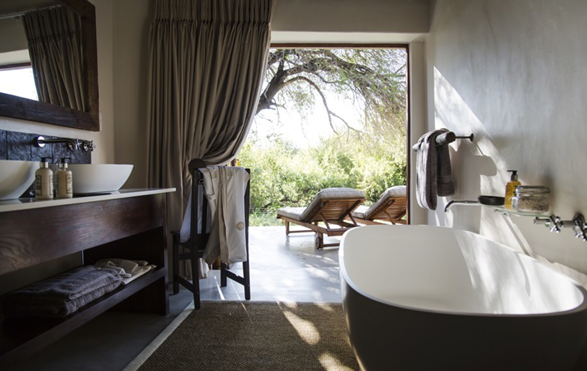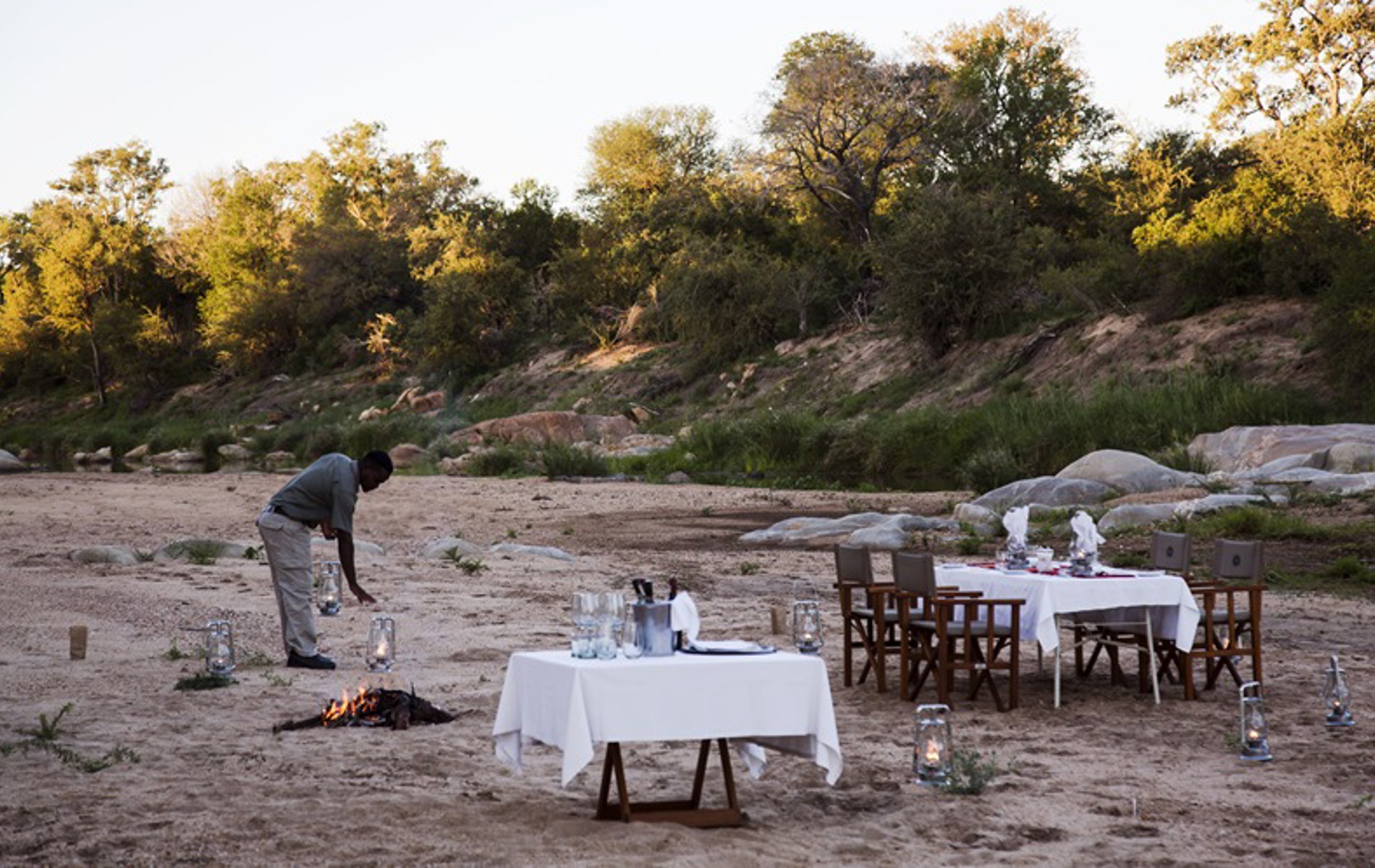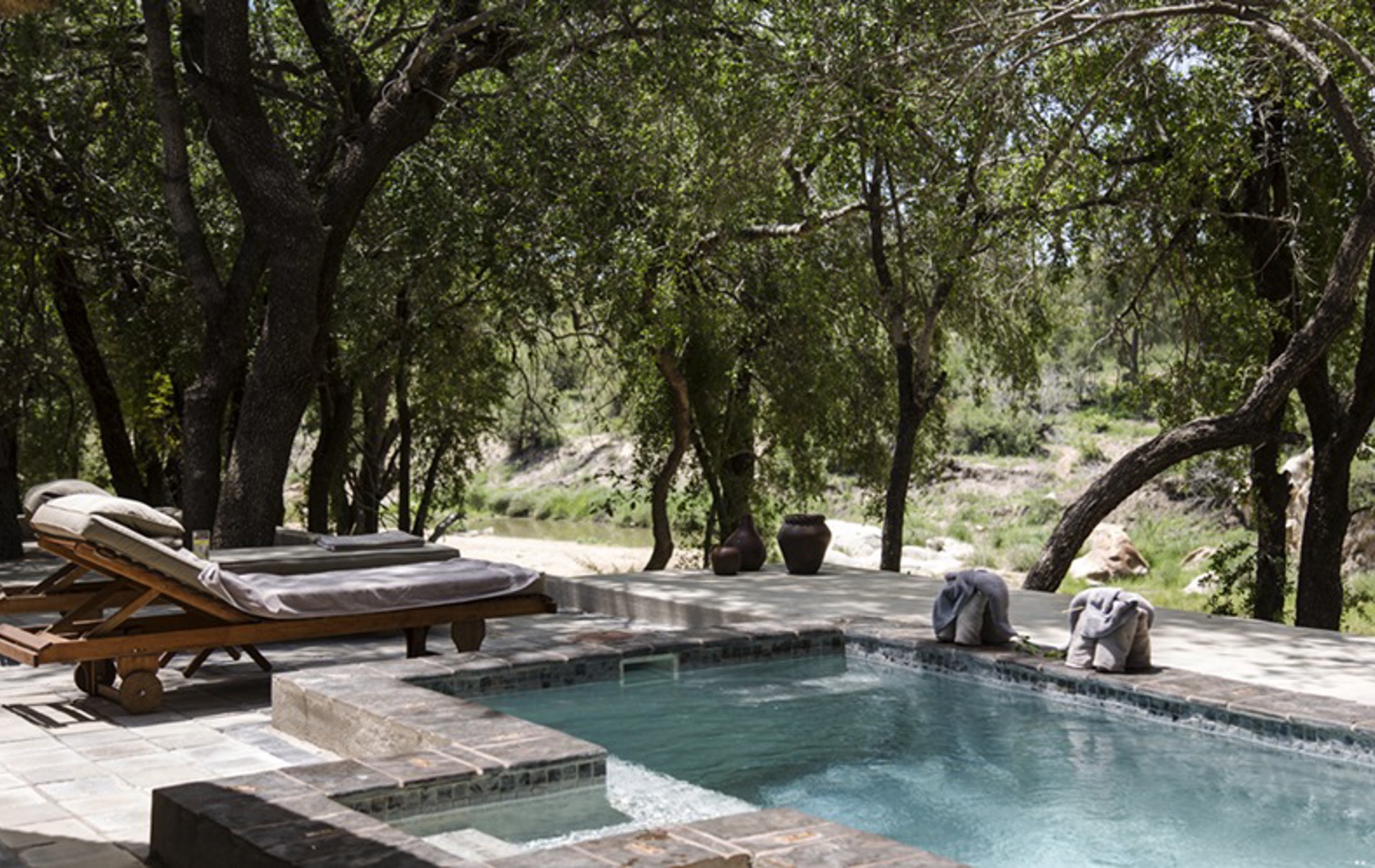 De eksklusive suiter har egen privat terrasse med udendørs bruser, hvor man i ro og fred kan nyde udsigten til bushen. Der spottes jævnligt forskellige vilde dyr fra terrasserne, idet dyrene kommer for at drikke ved vandhul og flod omkring campen. Udover de tre suiter har campen en hovedbygning med køkken - gæsterne er mere end velkomne til at gå i køkkenet og deltage i kokkerierne - en fælles veranda og en pool. Campen har eget 4*4 køretøj, der bruges til de fantastiske game drives i Timavati reservatet.